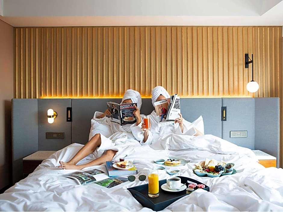 With 1016 reviews, Mondrian Seoul Itaewon has established itself as a popular choice among guests. The hotel offers a range of fantastic amenities including an indoor and outdoor swimming pool, a pet-friendly policy, complimentary WiFi, and a fitness center. After a day of exploring the city, guests can relax and unwind in the spa or sauna, or enjoy a delicious meal at the hotel's restaurant.
